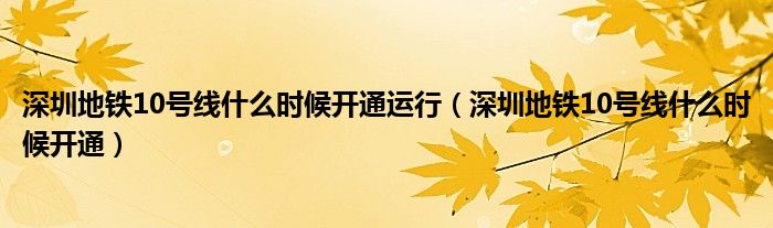 关于深圳地铁10号线什么时候开通运行,深圳地铁10号线什么时候开通这个很多人还不知道,今天菲菲来为大家解答以上的问题,现在让我们一起来看看吧!