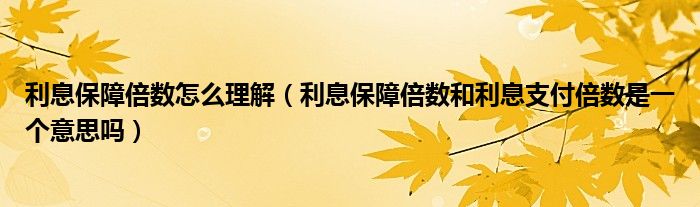 利息保障倍数怎么理解(利息保障倍数和利息支付倍数是一个意思吗)