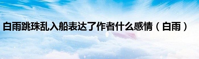 关于白雨跳珠乱入船表达了作者什么感情,白雨这个很多人还不知道,今天菲菲来为大家解答以上的问题,现在让我们一起来看看吧!