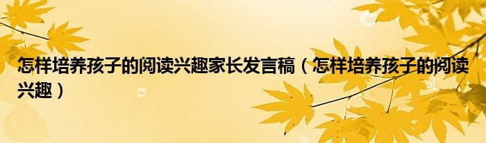 关于怎样培养孩子的阅读兴趣家长发言稿,怎样培养孩子的阅读兴趣这个很多人还不知道,今天菲菲来为大家解答以上的问题,现在让我们一起来看看吧!