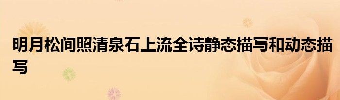 关于明月松间照清泉石上流全诗静态描写和动态描写这个很多人还不知道,今天菲菲来为大家解答以上的问题,现在让我们一起来看看吧!