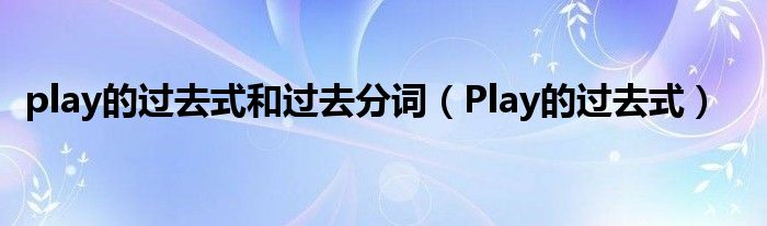 关于play的过去式和过去分词,Play的过去式这个很多人还不知道,今天菲菲来为大家解答以上的问题,现在让我们一起来看看吧!