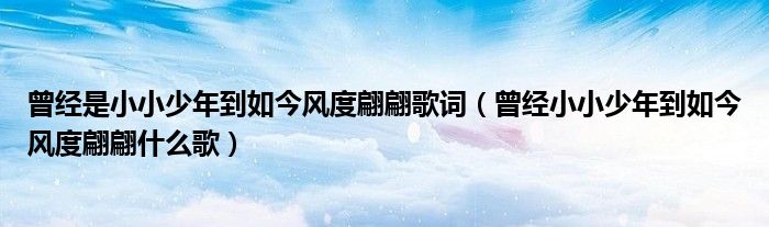 关于曾经是小小少年到如今风度翩翩歌词,曾经小小少年到如今风度翩翩什么歌这个很多人还不知道,今天菲菲来为大家解答以上的问题,现在让我们一起来看看吧!