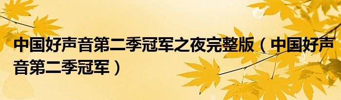 关于中国好声音第二季冠军之夜完整版,中国好声音第二季冠军这个很多人还不知道,今天菲菲来为大家解答以上的问题,现在让我们一起来看看吧!