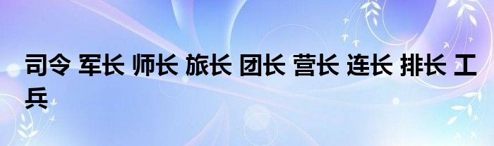 关于司令 军长 师长 旅长 团长 营长 连长 排长 工兵这个很多人还不知道,今天菲菲来为大家解答以上的问题,现在让我们一起来看看吧!