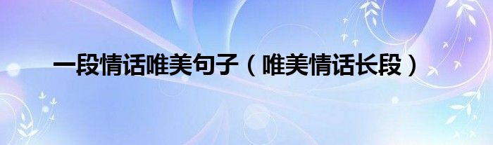 关于一段情话唯美句子,唯美情话长段这个很多人还不知道,今天菲菲来为大家解答以上的问题,现在让我们一起来看看吧!