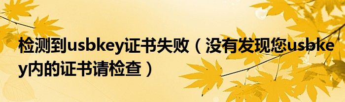 关于检测到usbkey证书失败,没有发现您usbkey内的证书请检查这个很多人还不知道,今天菲菲来为大家解答以上的问题,现在让我们一起来看看吧!