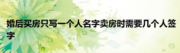 关于婚后买房只写一个人名字卖房时需要几个人签字这个很多人还不知道,今天菲菲来为大家解答以上的问题,现在让我们一起来看看吧!