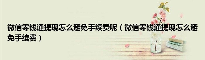 微信零钱通提现怎么避免手续费呢(微信零钱通提现怎么避免手续费)