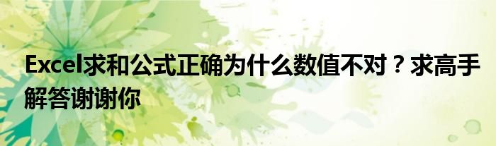 关于Excel求和公式正确为什么数值不对?求高手解答谢谢你这个很多人还不知道,今天菲菲来为大家解答以上的问题,现在让我们一起来看看吧!