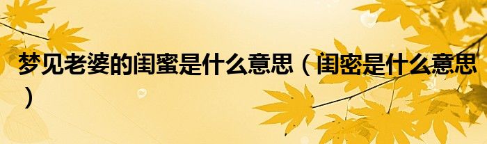 关于梦见老婆的闺蜜是什么意思,闺密是什么意思这个很多人还不知道,今天菲菲来为大家解答以上的问题,现在让我们一起来看看吧!