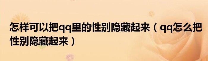 怎样可以把qq里的性别隐藏起来(qq怎么把性别隐藏起来)