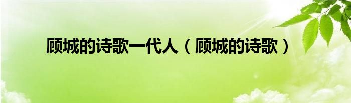 关于顾城的诗歌一代人,顾城的诗歌这个很多人还不知道,今天菲菲来为大家解答以上的问题,现在让我们一起来看看吧!