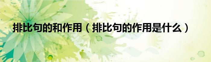 关于排比句的和作用,排比句的作用是什么这个很多人还不知道,今天菲菲来为大家解答以上的问题,现在让我们一起来看看吧!