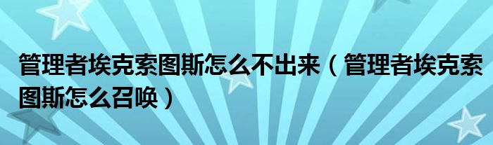 管理者埃克索图斯怎么不出来(管理者埃克索图斯怎么召唤)
