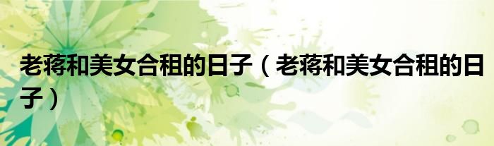 老蒋和美女合租的日子(老蒋和美女合租的日子)