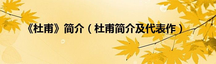 关于《杜甫》简介,杜甫简介及代表作这个很多人还不知道,今天菲菲来为大家解答以上的问题,现在让我们一起来看看吧!