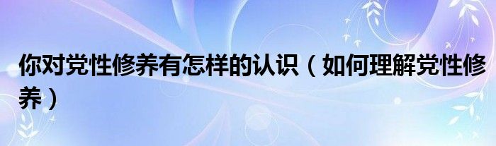 关于你对党性修养有怎样的认识,如何理解党性修养这个很多人还不知道,今天菲菲来为大家解答以上的问题,现在让我们一起来看看吧!
