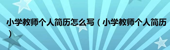 关于小学教师个人简历怎么写,小学教师个人简历这个很多人还不知道,今天菲菲来为大家解答以上的问题,现在让我们一起来看看吧!