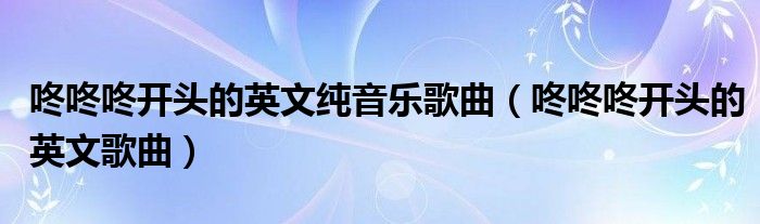 关于咚咚咚开头的英文纯音乐歌曲,咚咚咚开头的英文歌曲这个很多人还不知道,今天菲菲来为大家解答以上的问题,现在让我们一起来看看吧!