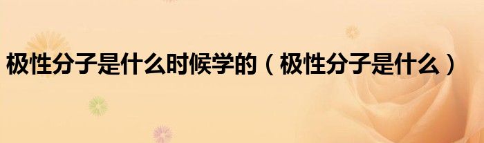 关于极性分子是什么时候学的,极性分子是什么这个很多人还不知道,今天菲菲来为大家解答以上的问题,现在让我们一起来看看吧!