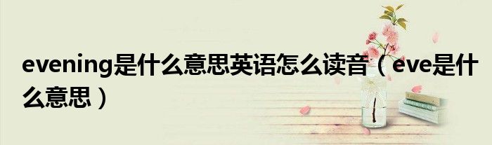 关于evening是什么意思英语怎么读音,eve是什么意思这个很多人还不知道,今天菲菲来为大家解答以上的问题,现在让我们一起来看看吧!