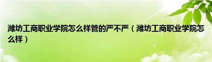关于潍坊工商职业学院怎么样管的严不严,潍坊工商职业学院怎么样这个很多人还不知道,今天菲菲来为大家解答以上的问题,现在让我们一起来看看吧!