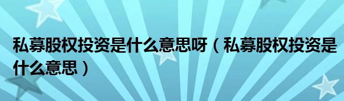 关于私募股权投资是什么意思呀,私募股权投资是什么意思这个很多人还不知道,今天菲菲来为大家解答以上的问题,现在让我们一起来看看吧!