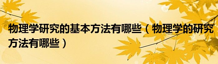 关于物理学研究的基本方法有哪些,物理学的研究方法有哪些这个很多人还不知道,今天菲菲来为大家解答以上的问题,现在让我们一起来看看吧!