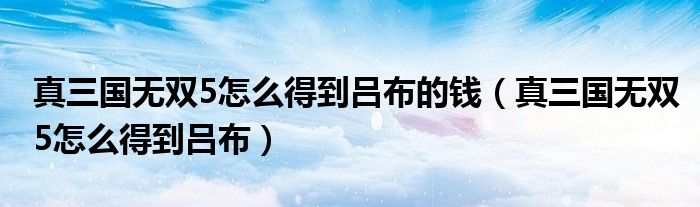 关于真三国无双5怎么得到吕布的钱,真三国无双5怎么得到吕布这个很多人还不知道,今天菲菲来为大家解答以上的问题,现在让我们一起来看看吧!