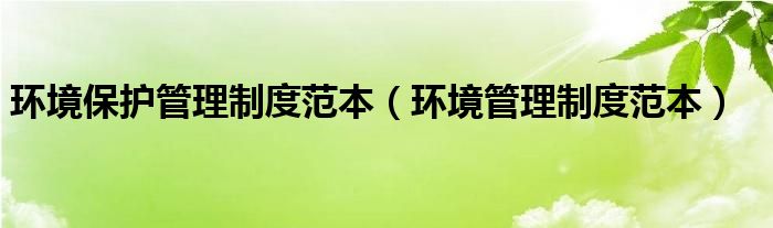 关于环境保护管理制度范本,环境管理制度范本这个很多人还不知道,今天菲菲来为大家解答以上的问题,现在让我们一起来看看吧!