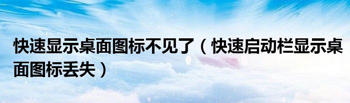 关于快速显示桌面图标不见了,快速启动栏显示桌面图标丢失这个很多人还不知道,今天菲菲来为大家解答以上的问题,现在让我们一起来看看吧!