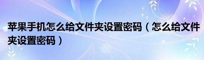 苹果手机怎么给文件夹设置密码(怎么给文件夹设置密码)
