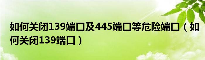 如何关闭139端口及445端口等危险端口(如何关闭139端口)