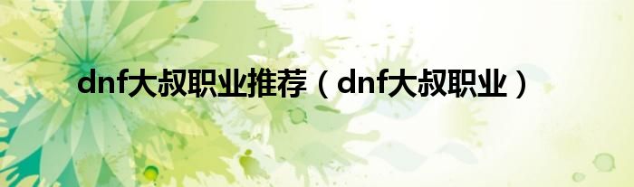 dnf大叔职业推荐(dnf大叔职业)