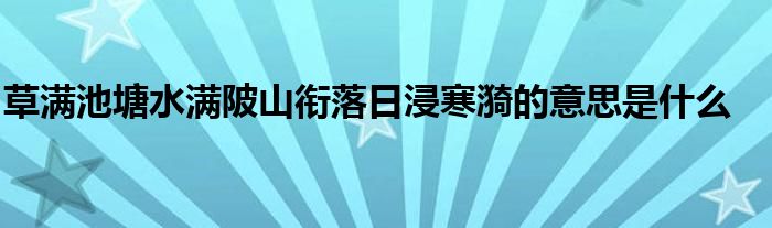 关于草满池塘水满陂山衔落日浸寒漪的意思是什么这个很多人还不知道,今天菲菲来为大家解答以上的问题,现在让我们一起来看看吧!
