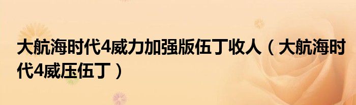 关于大航海时代4威力加强版伍丁收人,大航海时代4威压伍丁这个很多人还不知道,今天菲菲来为大家解答以上的问题,现在让我们一起来看看吧!