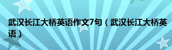 关于武汉长江大桥英语作文7句,武汉长江大桥英语这个很多人还不知道,今天菲菲来为大家解答以上的问题,现在让我们一起来看看吧!