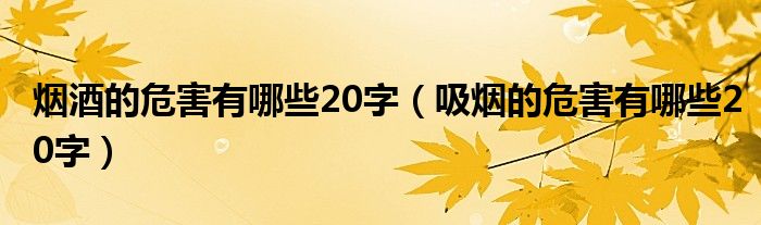 关于烟酒的危害有哪些20字,吸烟的危害有哪些20字这个很多人还不知道,今天菲菲来为大家解答以上的问题,现在让我们一起来看看吧!