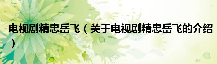 电视剧精忠岳飞(关于电视剧精忠岳飞的介绍)