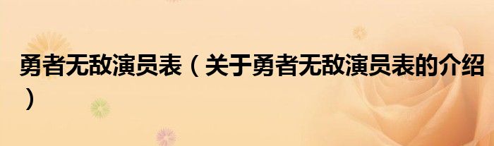 大家好,今天小乐来为大家解答以上的问题。勇者无敌演员表,关于勇者无敌演员表的介绍很多人还不知道,现在让我们一起来看看吧!