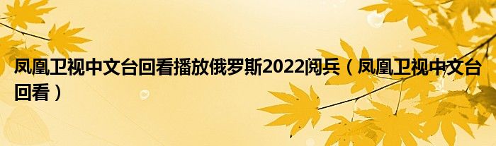 凤凰卫视中文台回看播放俄罗斯2022阅兵(凤凰卫视中文台回看)