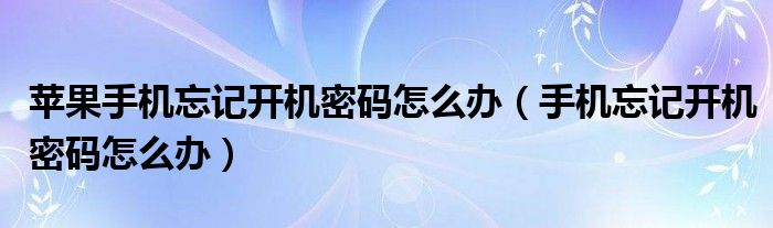 苹果手机忘记开机密码怎么办(手机忘记开机密码怎么办)