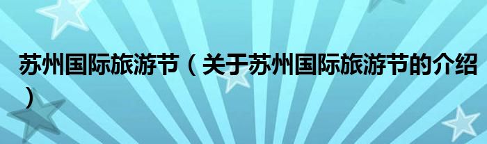 大家好,今天小乐来为大家解答以上的问题。苏州国际旅游节,关于苏州国际旅游节的介绍很多人还不知道,现在让我们一起来看看吧!