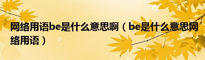 关于网络用语be是什么意思啊,be是什么意思网络用语这个很多人还不知道,今天菲菲来为大家解答以上的问题,现在让我们一起来看看吧!