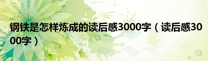 关于钢铁是怎样炼成的读后感3000字,读后感3000字这个很多人还不知道,今天菲菲来为大家解答以上的问题,现在让我们一起来看看吧!