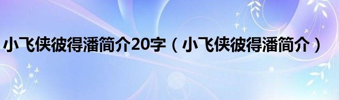 关于小飞侠彼得潘简介20字,小飞侠彼得潘简介这个很多人还不知道,今天菲菲来为大家解答以上的问题,现在让我们一起来看看吧!