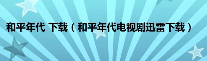 和平年代 下载(和平年代电视剧迅雷下载)