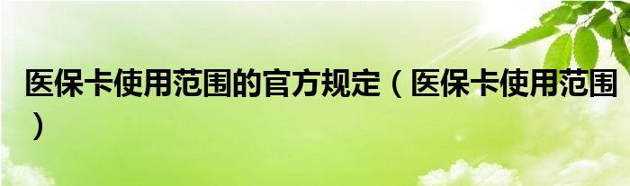 关于医保卡使用范围的官方规定,医保卡使用范围这个很多人还不知道,今天菲菲来为大家解答以上的问题,现在让我们一起来看看吧!