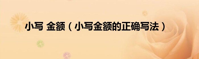 最佳答案关于小写 金额,小写金额的正确写法这个很多人还不知道,今天菲菲来为大家解答以上的问题,现在让我们一起来看看吧!1、就是阿拉伯数字 比如:美元20元 $20 人民币30元 ¥30。本文到此分享完毕,希望对大家有所帮助。